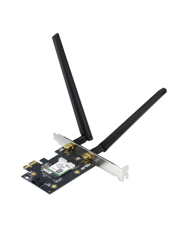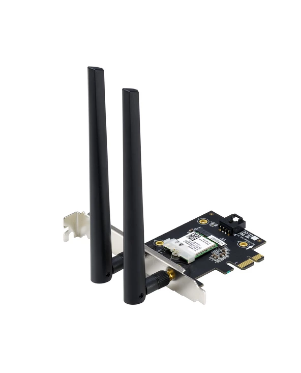 ASUS PCE-AX1800 BT5.2. Interne. Technologie de connectivité: Sans fil, Interface de l’hôte: PCI Express, Interface: WLAN / Bluetooth. Débit de transfert des données maximum: 1775 Mbit/s, Norme Wi-Fi: Wi-Fi 6 (802.11ax), Bande Wi-Fi: Bi-bande (2,4 GHz / 5 GHz)
