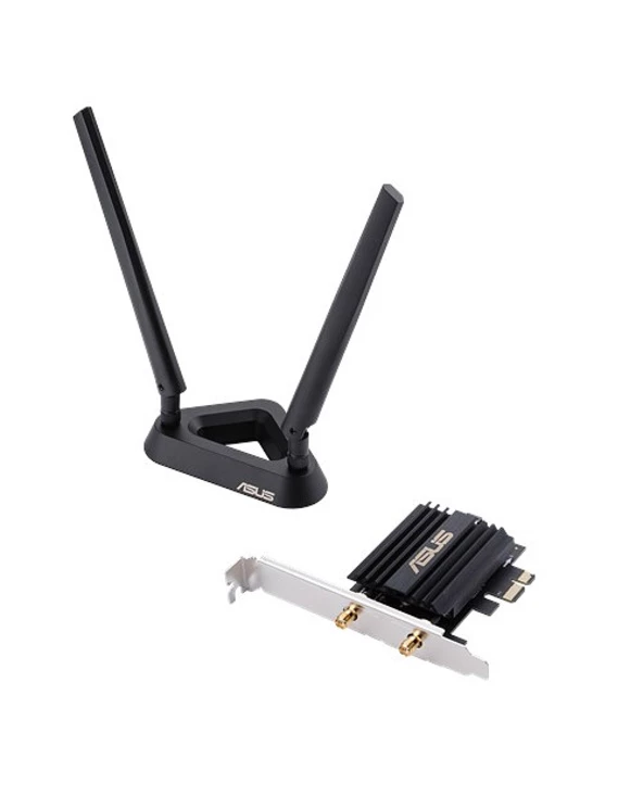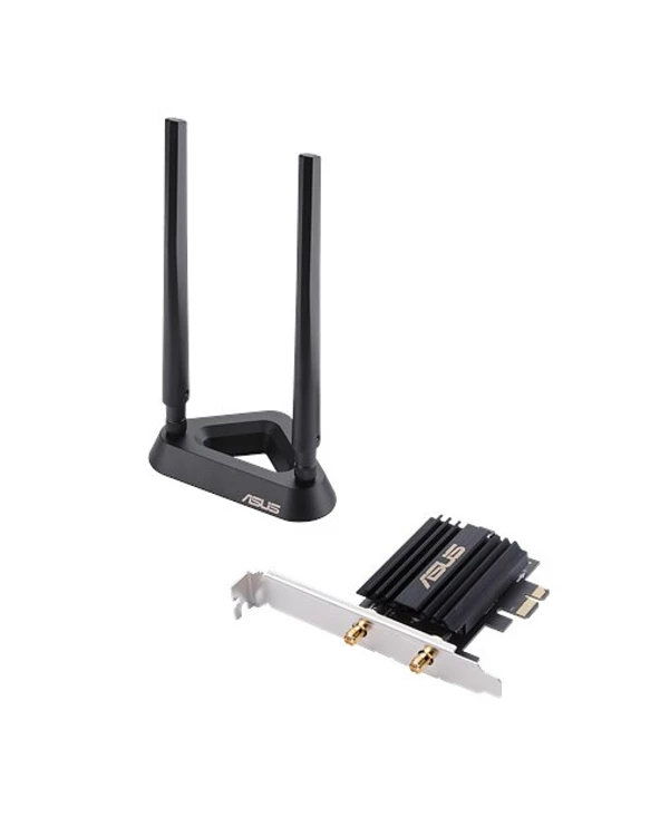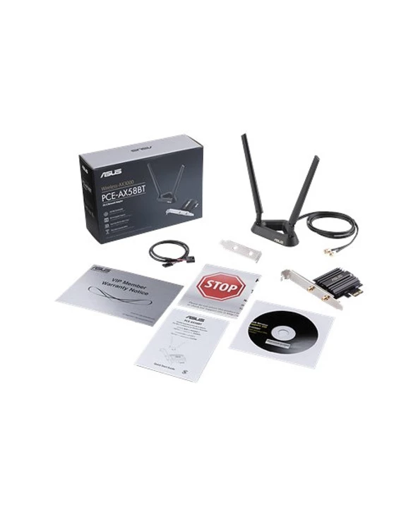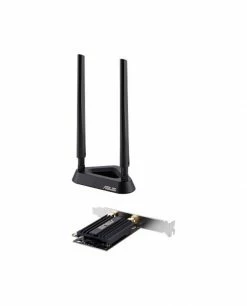 ASUS PCE-AX58BT. Interne. Technologie de connectivité: Sans fil, Interface de l’hôte: PCI Express, Interface: WLAN / Bluetooth. Débit de transfert des données maximum: 2402 Mbit/s, Norme Wi-Fi: Wi-Fi 6 (802.11ax), Bande Wi-Fi: Bi-bande (2,4 GHz / 5 GHz). Couleur du produit: Noir