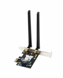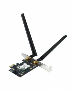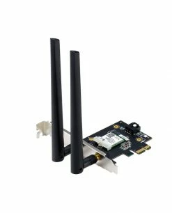 ASUS PCE-AXE5400. Interne. Technologie de connectivité: Avec fil, Interface de l’hôte: PCI Express, Interface: WLAN. Débit de transfert des données maximum: 2402 Mbit/s, Norme Wi-Fi: Wi-Fi 6E (802.11ax), Bande Wi-Fi: Tri-bande (2,4 GHz / 5 GHz / 6 GHz)