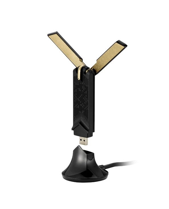 ASUS USB-AX56. Technologie de connectivité: Sans fil, Interface de l’hôte: USB, Interface: WLAN. Débit de transfert des données maximum: 1775 Mbit/s, Bande Wi-Fi: Bi-bande (2,4 GHz / 5 GHz). Alimenté par port USB