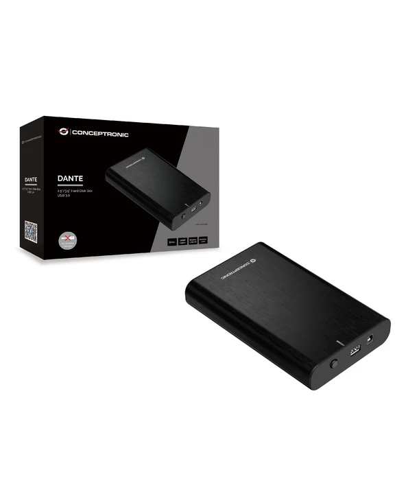 Conceptronic DANTE02B. Type de produit: Boîtier disque dur/SSD. Nombre d’unités de stockage pris en charge: 1, Taille de l’unité de stockage: 2.5/3.5″, Interfaces de lecteur de stockage prises en charge: SATA, Série ATA II, Série ATA III. Taux de transfert des données: 5 Gbit/s. Couleur du produit: Noir. Connecteur USB: USB Type-A