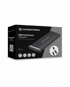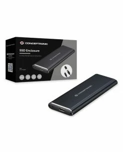 Conceptronic DDE01B. Type de produit: Enceinte ssd. Nombre d’unités de stockage pris en charge: 1, Taille de l’unité de stockage: M.2, Capacité de stockage maximum: 1 To. Taux de transfert des données: 10 Gbit/s. Couleur du produit: Noir. Connecteur USB: USB Type-C