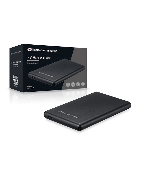 Conceptronic HDE02B. Type de produit: Boîtier HDD. Nombre d’unités de stockage pris en charge: 1, Taille de l’unité de stockage: 2.5″, Interfaces de lecteur de stockage prises en charge: SATA, Série ATA II, Série ATA III, Capacité de stockage maximum: 1 To. Taux de transfert des données: 10 Gbit/s. Couleur du produit: Noir. Connecteur USB: USB Type-C