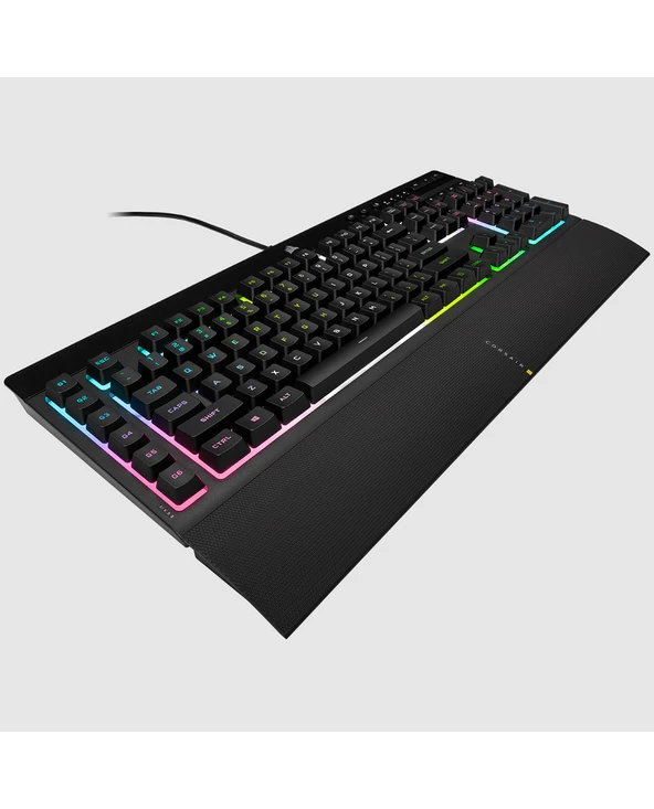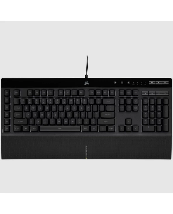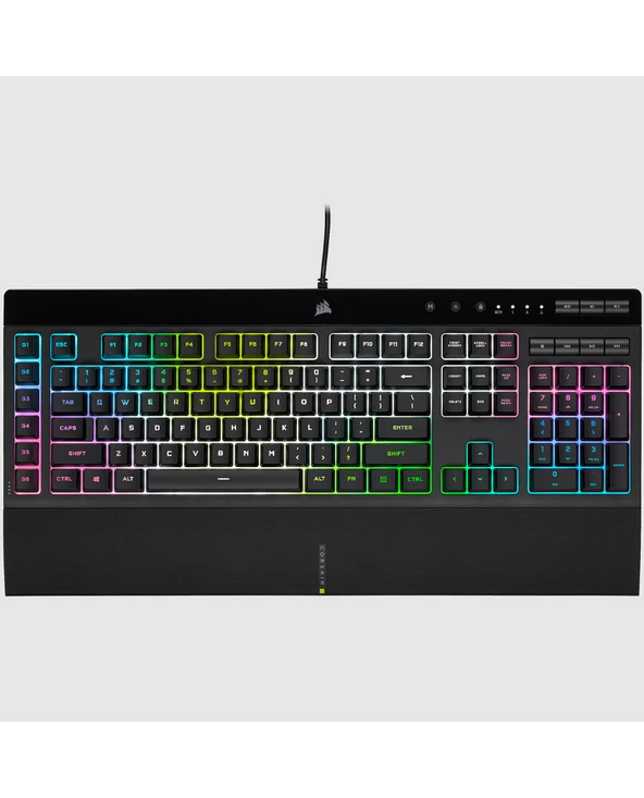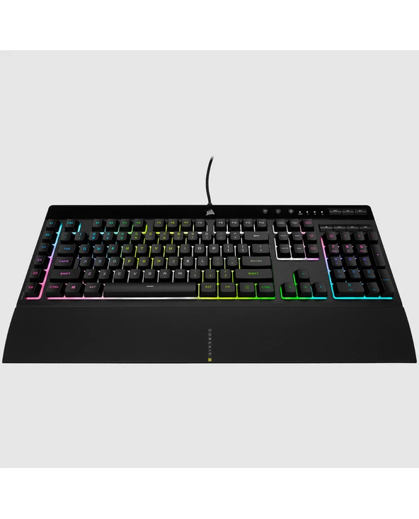 Corsair K55 RGB PRO XT. Facteur de forme du clavier: Pleine taille. Style de clavier: Courbé. Interface de l’appareil: USB, Interrupteur à clé de clavier: Clavier à membrane, Nombre de touches du clavier: 111. Type de rétro: LED RGB, Repose-poignets. Utilisation recommandée: Jouer. Couleur du produit: Noir