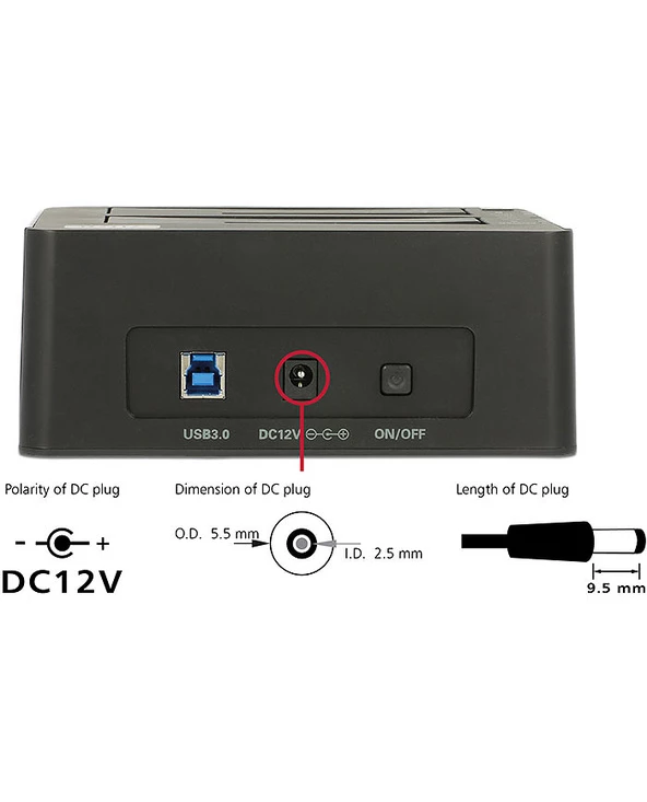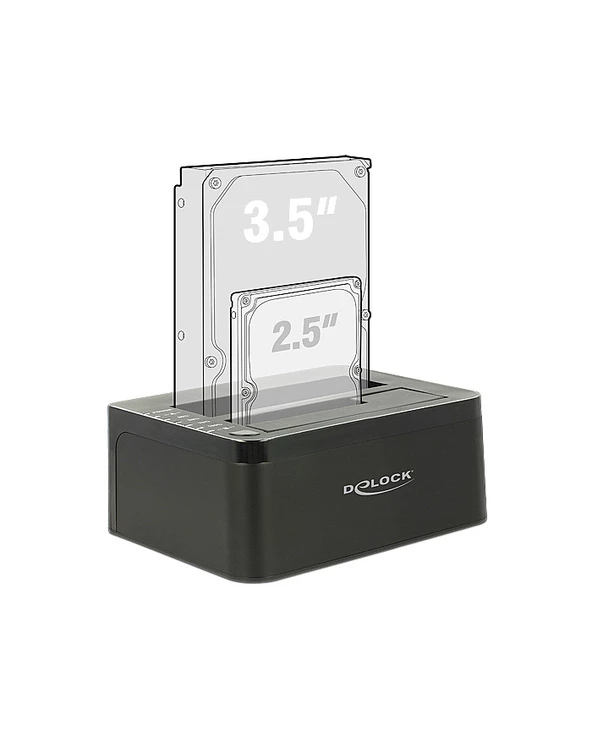 DeLOCK 62661. Type de support de stockage: HDD, D’interface pour unité de stockage: SATA, Tailles de disque de stockage pris en charge: 2.5,3.5″. Taux de transfert de données maximal: 5 Gbit/s, Couleur du produit: Noir, Voyants: Énergie, Statut. Tension d’entrée AC: 100-240 V, Fréquence d’entrée AC: 50 – 60 Hz, Courant d’entrée: 1.2 A. Largeur: 149 mm, Profondeur: 114 mm, Hauteur: 61 mm. Prise en charge du système d’exploitation Windows: Windows 10 Education,Windows 10 Education x64,Windows 10 Enterprise,Windows 10 Enterprise…, Prise en charge du système d’exploitation Mac: Mac OS X 10.7 Lion,Mac OS X 10.8 Mountain Lion,Mac OS X 10.9 Mavericks