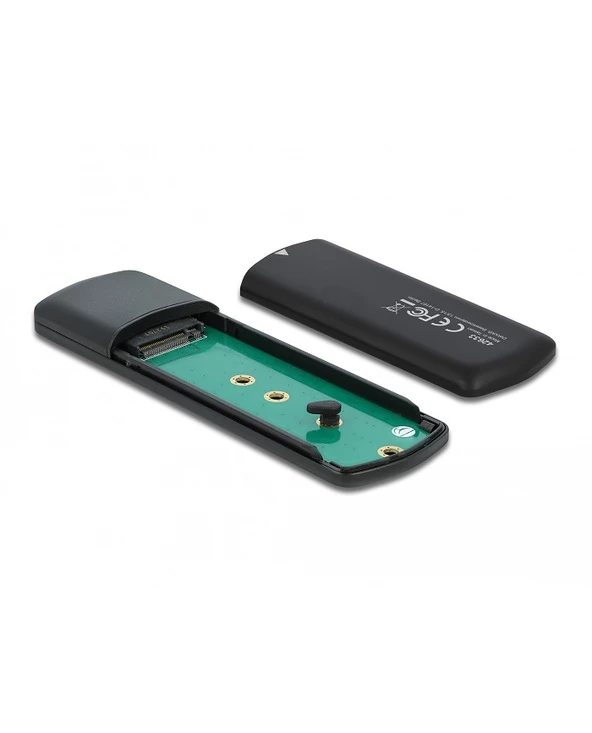 Le dispositif spécial de ce boitier fait qu’aucun outil n’est nécessaire pour installer le SSD M.2. Le couvercle peut être poussé vers l’arrière par une petite pression, le SSD sera attaché au PCB avec un embout en caoutchouc, puis le couvercle est remis jusqu’au verrouillage.