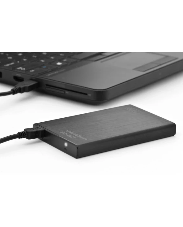 Le boîtier de disque dur externe SSD/HDD DIGITUS vous offre la flexibilité d’utiliser votre disque dur SSD/HDD dans un boîtier moderne et esthétique. La prise en main facile vous permet d’installer très rapidement un disque SSD/HDD SATA I à II de 2.5 po avec une vitesse de construction de 9,5 ou 7,0 mm. Le boîtier aluminium fin et élégant vous permet de transporter vos données confortablement et d’y accéder rapidement où que vous soyez. Plus besoin de bloc d’alimentation supplémentaire, car l’alimentation électrique est assurée via le port USB.