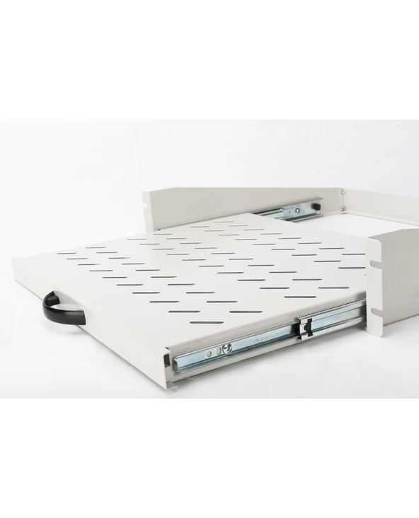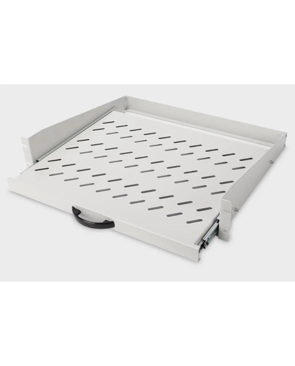 L’étagère pour montage fixe est facile à installer dans les quatre rails profilés de 483 mm (19 po) de votre armoire réseau ou armoire serveur de 483 mm (19 po). Grâce la structure compacte, elle est particulièrement adaptée pour les boîtiers muraux de 483 mm (19 p) à partir d’une profondeur de 450 mm. L’étagère est amovible à l’aide d’une poignée, facilite ainsi l’accès et constitue le support optimal pour les composants ne correspondant pas à 483 mm (19 po) grâce à la tôle stable et perforée avec une capacité de charge élevée.