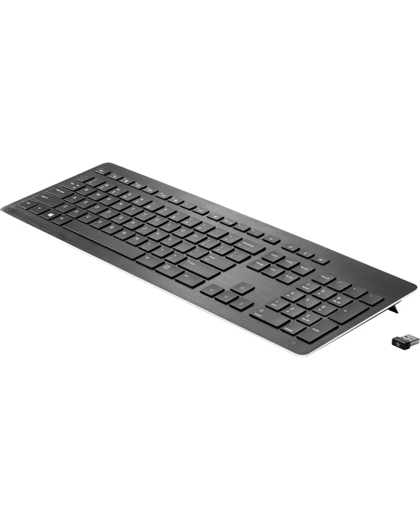 HP Clavier sans fil Premium. Facteur de forme du clavier: Taille réelle (100 %). Style de clavier: Droit. Technologie de connectivité: Sans fil, Interface de l’appareil: RF sans fil, Interrupteur à clé de clavier: Clavier à membrane, Utilisation recommandée: Maison. Couleur du produit: Noir