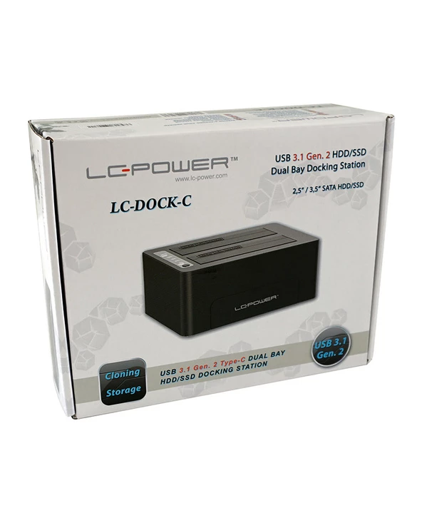 LC-Power LC-DOCK-C. Type de support de stockage: HDD, SSD, D’interface pour unité de stockage: Série ATA III, Tailles de disque de stockage pris en charge: 2.5,3.5″. Interface de l’hôte: USB 3.2 Gen 2 (3.1 Gen 2) Type-C. Taux de transfert de données maximal: 10 Gbit/s, Couleur du produit: Noir, Matériel: Plastique. Largeur: 63 mm, Profondeur: 153 mm, Hauteur: 111 mm. Prise en charge du système d’exploitation Windows: Windows 10