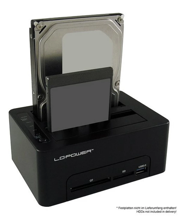 LC-Power LC-DOCK-U3-CR. Type de support de stockage: Disque dur, SSD, D’interface pour unité de stockage: SATA, Tailles de disque de stockage pris en charge: 2.5,3.5″. Interface de l’hôte: USB 3.2 Gen 1 (3.1 Gen 1) Type-A. Cartes mémoire compatibles: CF, SD. Taux de transfert de données maximal: 5 Gbit/s, Couleur du produit: Noir, Matériel: Plastique. Largeur: 153 mm, Profondeur: 112 mm, Hauteur: 62 mm