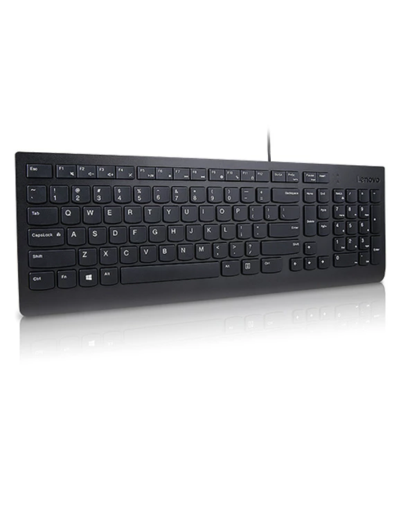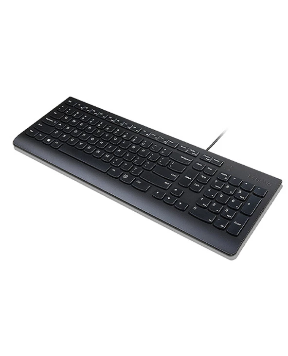 Lenovo Essential. Facteur de forme du clavier: Full-size (100%). Style de clavier: Droit. Interface de l’appareil: USB, Interrupteur à clé de clavier: Clavier à membrane, Disposition des touches du clavier: ĄŽERTY. Longueur de câble: 1,8 m. Utilisation recommandée: Universel. Couleur du produit: Noir