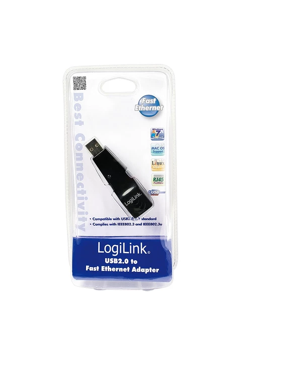 LogiLink Fast Ethernet USB 2.0 Adapter. Technologie de connectivité: Avec fil, Interface de l’hôte: USB. Débit de transfert des données maximum: 100 Mbit/s. Couleur du produit: Noir