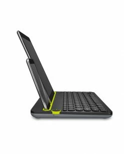 Le support intégré maintient votre téléphone ou tablette dans un angle parfait pour vous permettre de lire à l’écran pendant que vous tapez.