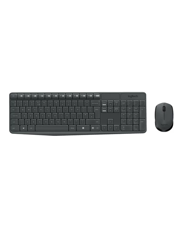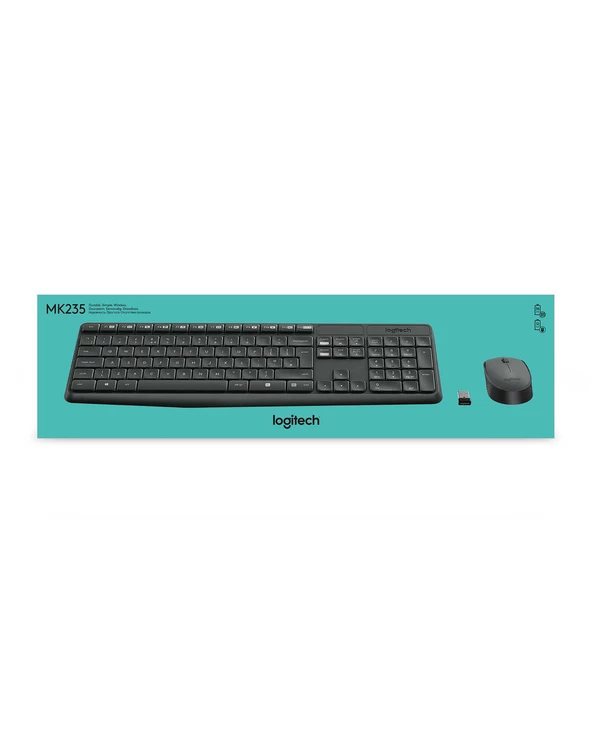 Logitech MK235 Wireless Keyboard and Mouse Combo. Facteur de forme du clavier: Taille réelle (100 %). Style de clavier: Droit. Technologie de connectivité: Sans fil, Interface de l’appareil: USB, Disposition des touches du clavier: QWERTZ, Nombre de touches du clavier: 100, Utilisation recommandée: Maison. Couleur du produit: Gris. Souris incluse