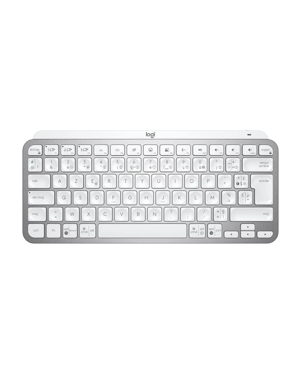 Logitech MX Keys Mini for Business. Facteur de forme du clavier: Mini. Style de clavier: Droit. Interface de l’appareil: RF sans fil + Bluetooth, Interrupteur à clé de clavier: Commutateur de touche « ciseaux », Disposition des touches du clavier: AZERTY, Nombre de touches du clavier: 79. Type de rétro: LED. Utilisation recommandée: Bureau. Couleur du produit: Aluminium, Blanc