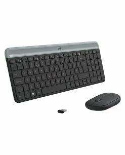 Logitech Slim Wireless Keyboard and Mouse Combo MK470. Facteur de forme du clavier: Taille réelle (100 %). Style de clavier: Droit. Interface de l’appareil: USB, Disposition des touches du clavier: QWERTZ, Utilisation recommandée: Universel. Couleur du produit: Graphite. Souris incluse