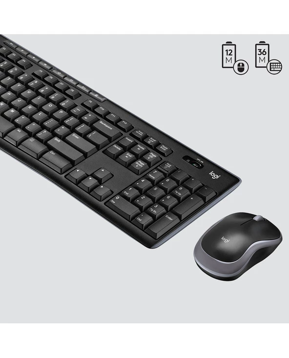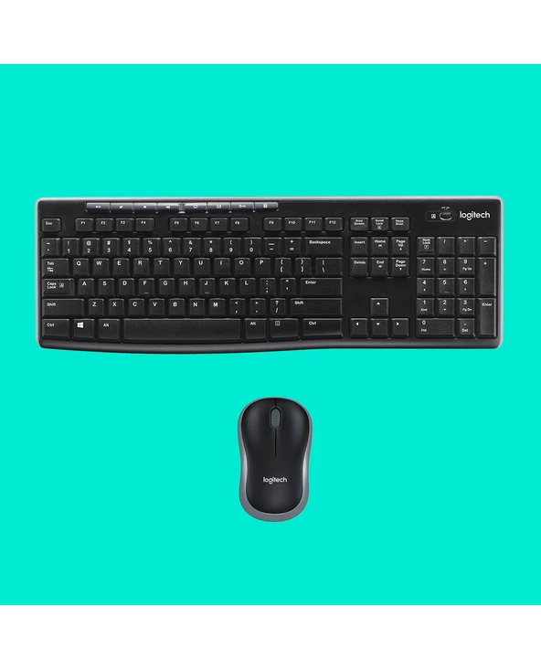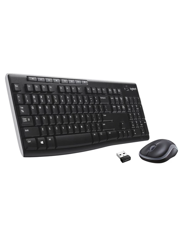 Logitech Wireless Combo MK270. Facteur de forme du clavier: Taille réelle (100 %). Style de clavier: Droit. Technologie de connectivité: Sans fil, Interface de l’appareil: RF sans fil, Disposition des touches du clavier: QWERTY, Utilisation recommandée: Maison. Couleur du produit: Noir, Argent. Souris incluse