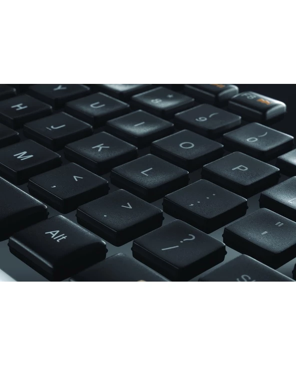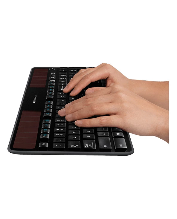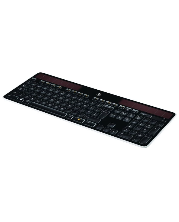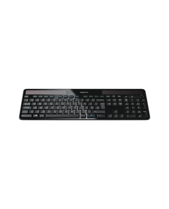 Logitech Wireless Solar Keyboard K750. Facteur de forme du clavier: Taille réelle (100 %). Style de clavier: Droit. Technologie de connectivité: Sans fil, Interface de l’appareil: RF sans fil, Disposition des touches du clavier: QWERTY, Nombre de touches du clavier: 104, Utilisation recommandée: Bureau. Couleur du produit: Noir