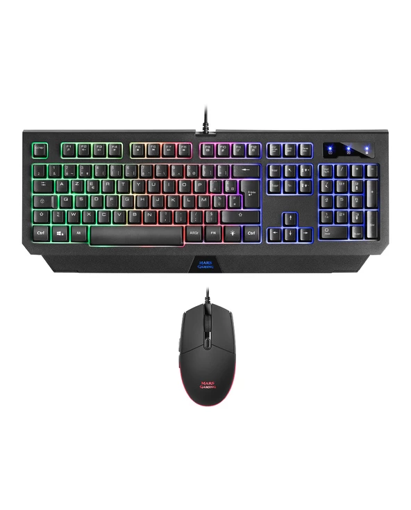 Mars Gaming MCP100FR. Facteur de forme du clavier: Taille réelle (100 %). Style de clavier: Droit. Interface de l’appareil: USB, Interrupteur à clé de clavier: Clavier mécanique. Type de rétro: LED RGB, Repose-poignets. Longueur de câble: 1,5 m. Utilisation recommandée: Jouer. Couleur du produit: Noir. Souris incluse