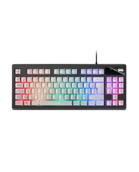 Mars Gaming MKAXWFR. Facteur de forme du clavier: Taille réelle (100 %). Style de clavier: Droit. Interface de l’appareil: USB, Interrupteur à clé de clavier: Clavier à membrane. Type de rétro: LED RGB, Repose-poignets. Longueur de câble: 1,8 m. Utilisation recommandée: Jouer. Couleur du produit: Noir, Blanc