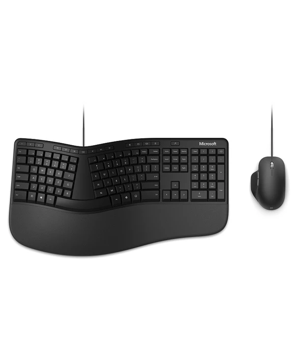 Microsoft Ergonomic Desktop for Business. Facteur de forme du clavier: Standard. Style de clavier: Courbé. Interface de l’appareil: USB, Disposition des touches du clavier: AZERTY. Repose-poignets. Utilisation recommandée: Bureau. Couleur du produit: Noir. Souris incluse
