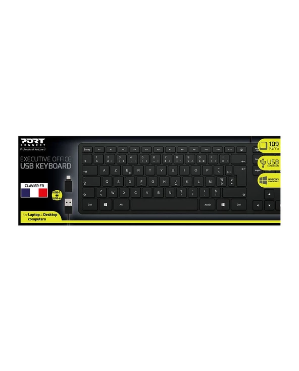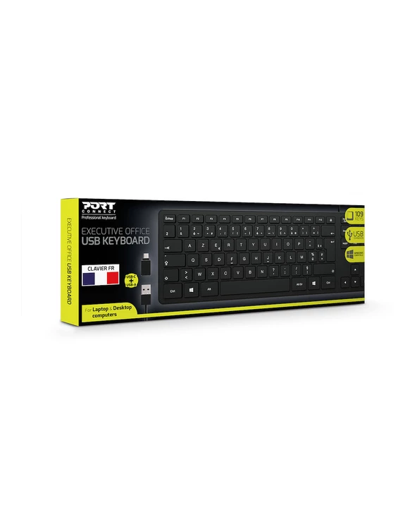 Ce produit est un clavier professionnel de bureau, filaire, avec une double connectivité USB-A & USB-C. Le clavier possède 109 touches. Il est compatible avec le système d’exploitation Windows. Il n’y a pas besoin d’installer le clavier sur votre ordinateur, tout se fait automatiquement au moment du branchement du clavier. Le clavier comporte des indicateurs LED de batterie faible, verrouillage des chiffres, verrouillage des majuscules, verrouillage du défilement. Nous proposons ce clavier dans 3 versions : français, anglais et suédois.
