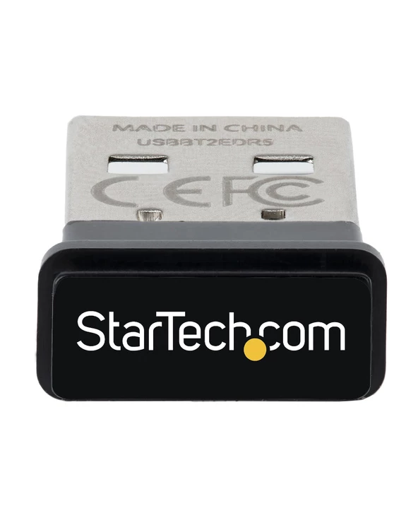 Adaptateur Bluetooth 5.0 USB pour PC/Ordinateur Portable | Pour Clavier/Souris/Casque | Portée de 10m | EDR/LE | Windows/LinuxCet adaptateur Bluetooth USB de classe 2 avec EDR/BLE est un dispositif de taille compacte qui ajoute des capacités Bluetooth à un ordinateur portable ou de bureau. Cet adaptateur permet une connexion sans fil avec plusieurs appareils, en utilisant une consommation d’énergie minimale, à des distances allant jusqu’à 10 m.Améliorer votre poste de travailCet adaptateur Bluetooth USB permet d’ajouter facilement des fonctionnalités Bluetooth connecter une large gamme de périphériques Bluetooth sans fil. Arborant un encombrement minimal et un design neutre, c’est un compagnon idéal pour les ordinateurs portables/ordinateurs bloc-notes, s’asseyant presque au ras d’un port USB.Fonctions pratiquesCet adaptateur Bluetooth USB est l’accessoire idéal pour votre système. Il est doté d’un débit de données amélioré (EDR) et du Bluetooth Low Energy (BLE), pour une efficacité optimale de la batterie. Cet adaptateur permet une connexion à plusieurs périphériques Bluetooth 5.0, avec des taux de transfert de données de 2 Mbps. L’installation plug and play pour les PC fonctionnant avec les dernières versions de Windows ou de Linux garantit une installation/déploiement rapide et simple. Toutes ces caractéristiques sont regroupées dans un design compact et discret.USBA-BLUETOOTH-V5-C2 bénéficie d’une garantie de 2 ans de la part de StarTech.com, incluant une assistance technique multilingue gratuite et à vie 24/5.The StarTech.com Advantage
