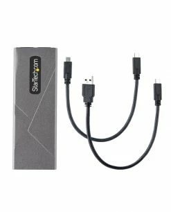 Fonctionne avec les disques M.2 PCIe et SATA | Supporte les hauteurs de disques 2230/2242/2260/2280 | Installation du disque sans outil | Câbles hôtes USB-C et USB-A inclusTransformez votre SSD PCIe M.2 NVMe ou SATA AHCI M.2 en une solution de stockage externe USB hautement portable. Ce boîtier est doté de l’USB 3.1 Gen 2 (10Gbps) avec prise en charge de l’UASP et PCIe 3.0 offrant des vitesses de transfert de données réelles en lecture/écriture allant jusqu’à 1 Go par seconde. Fonctionnant avec les disques PCIe et SATA, ce boîtier assure la compatibilité avec de nombreux disques M.2, prenant en charge les disques M-Key (PCIe) et B+M-Key (SATA) de taille 2230/2242/2260/2280. Le boîtier est également compatible en amont avec les disques basés sur PCIe 4.0, à des performances PCIe 3.0 réduites.L’USB 3.1 Gen 2 10Gbps (également connu sous le nom d’USB 3.2 Gen 2×1) est rétrocompatible avec l’USB 3.1 Gen 1 5Gbps (également connu sous le nom d’USB 3.0), l’USB 2.0 et l’USB 1.1.Solution tout-en-un M.2 et USBAvec une compatibilité pour les disques M.2 basés sur PCIe NVMe et SATA, ce boîtier résout le défi commun d’identifier quel boîtier est compatible avec votre disque M.2. Que votre disque M.2 soit basé sur SATA ou PCIe NVMe, vous pouvez être assuré que ce boîtier fournira une solution de haute performance pour transformer votre disque M.2 en un boîtier externe portable. Pour plus de compatibilité, le boîtier fonctionne avec plusieurs longueurs de disque prenant en charge les disques 2230, 2242, 2260 et 2280 mm, notamment les disques Samsung (850, 860, 870, 950, 960, 970) Kingston, Seagate, Western Digital (WD), HP et les disques SSD Intel.Pour une prise en charge multiplateforme de ce boîtier, celui-ci dispose d’une connexion hôte USB-C et comprend deux câbles hôtes différents de 30 cm de câbles hôtes, un câble USB-C vers USB-C et un câble USB-C vers USB-A. Ceci, combiné à la rétrocompatibilité du protocole USB, garantit que ce boîtier M.2 fonctionnera avec pratiquement n’importe quel ordinateur, qu’il soit de type USB-A, USB-C ou Thunderbolt 3/4.Installation de disque sans outilLe boîtier externe M2 SATA ou M.2 NVMe SSD prend en charge l’installation plug-and-play sans pilote et dispose d’une installation de disque sans outil, ce qui vous permet d’installer votre disque sans aucun outil.Performances inégaléesExploitez les vitesses élevées de votre disque M.2 NVMe ou SATA, avec ce boîtier SSD externe. Il offre un débit théorique maximal de 10 Gbps en USB 3.2 Gen 2×1, soit deux fois le débit de l’USB 3.2 Gen 1×1 à 5 Gbps. Le boîtier prend également en charge PCIe 3.0 qui, lorsqu’il est associé à un disque NVMe M.2, tire pleinement parti du débit disponible pour l’USB 3.2 Gen 2×1.Ce boîtier en aluminium sans ventilateur est doté de trous de ventilation pour une dissipation maximale de la chaleur, ce qui permet à votre disque de fonctionner sans bruit à une température optimale pour préserver les performances et protéger votre disque des dommages dus à la surchauffe.Durable et portableCe boîtier mince et de poche pour les disques M.2 basés sur PCIe NVMe ou SATA est spécialement conçu pour la mobilité, avec un design à petit facteur de forme qui se glisse facilement dans le sac de votre ordinateur portable. Son boîtier en aluminium léger mais durable permet de s’assurer que votre disque ne sera pas endommagé lors de vos déplacements.Le M2-USB-C-NVME-SATA bénéficie d’une garantie StarTech.com de 2 ans et d’un support technique gratuit à vie.The StarTech.com Advantage
