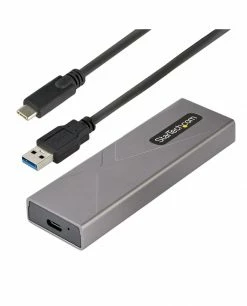 Fonctionne avec les disques M.2 PCIe et SATA | Supporte les hauteurs de disques 2230/2242/2260/2280 | Installation du disque sans outil | Câbles hôtes USB-C et USB-A inclusTransformez votre SSD PCIe M.2 NVMe ou SATA AHCI M.2 en une solution de stockage externe USB hautement portable. Ce boîtier est doté de l’USB 3.1 Gen 2 (10Gbps) avec prise en charge de l’UASP et PCIe 3.0 offrant des vitesses de transfert de données réelles en lecture/écriture allant jusqu’à 1 Go par seconde. Fonctionnant avec les disques PCIe et SATA, ce boîtier assure la compatibilité avec de nombreux disques M.2, prenant en charge les disques M-Key (PCIe) et B+M-Key (SATA) de taille 2230/2242/2260/2280. Le boîtier est également compatible en amont avec les disques basés sur PCIe 4.0, à des performances PCIe 3.0 réduites.L’USB 3.1 Gen 2 10Gbps (également connu sous le nom d’USB 3.2 Gen 2×1) est rétrocompatible avec l’USB 3.1 Gen 1 5Gbps (également connu sous le nom d’USB 3.0), l’USB 2.0 et l’USB 1.1.Solution tout-en-un M.2 et USBAvec une compatibilité pour les disques M.2 basés sur PCIe NVMe et SATA, ce boîtier résout le défi commun d’identifier quel boîtier est compatible avec votre disque M.2. Que votre disque M.2 soit basé sur SATA ou PCIe NVMe, vous pouvez être assuré que ce boîtier fournira une solution de haute performance pour transformer votre disque M.2 en un boîtier externe portable. Pour plus de compatibilité, le boîtier fonctionne avec plusieurs longueurs de disque prenant en charge les disques 2230, 2242, 2260 et 2280 mm, notamment les disques Samsung (850, 860, 870, 950, 960, 970) Kingston, Seagate, Western Digital (WD), HP et les disques SSD Intel.Pour une prise en charge multiplateforme de ce boîtier, celui-ci dispose d’une connexion hôte USB-C et comprend deux câbles hôtes différents de 30 cm de câbles hôtes, un câble USB-C vers USB-C et un câble USB-C vers USB-A. Ceci, combiné à la rétrocompatibilité du protocole USB, garantit que ce boîtier M.2 fonctionnera avec pratiquement n’importe quel ordinateur, qu’il soit de type USB-A, USB-C ou Thunderbolt 3/4.Installation de disque sans outilLe boîtier externe M2 SATA ou M.2 NVMe SSD prend en charge l’installation plug-and-play sans pilote et dispose d’une installation de disque sans outil, ce qui vous permet d’installer votre disque sans aucun outil.Performances inégaléesExploitez les vitesses élevées de votre disque M.2 NVMe ou SATA, avec ce boîtier SSD externe. Il offre un débit théorique maximal de 10 Gbps en USB 3.2 Gen 2×1, soit deux fois le débit de l’USB 3.2 Gen 1×1 à 5 Gbps. Le boîtier prend également en charge PCIe 3.0 qui, lorsqu’il est associé à un disque NVMe M.2, tire pleinement parti du débit disponible pour l’USB 3.2 Gen 2×1.Ce boîtier en aluminium sans ventilateur est doté de trous de ventilation pour une dissipation maximale de la chaleur, ce qui permet à votre disque de fonctionner sans bruit à une température optimale pour préserver les performances et protéger votre disque des dommages dus à la surchauffe.Durable et portableCe boîtier mince et de poche pour les disques M.2 basés sur PCIe NVMe ou SATA est spécialement conçu pour la mobilité, avec un design à petit facteur de forme qui se glisse facilement dans le sac de votre ordinateur portable. Son boîtier en aluminium léger mais durable permet de s’assurer que votre disque ne sera pas endommagé lors de vos déplacements.Le M2-USB-C-NVME-SATA bénéficie d’une garantie StarTech.com de 2 ans et d’un support technique gratuit à vie.The StarTech.com Advantage
