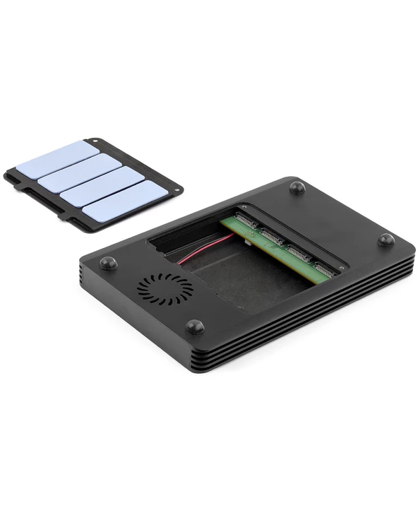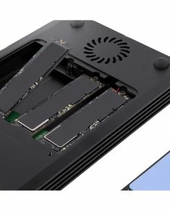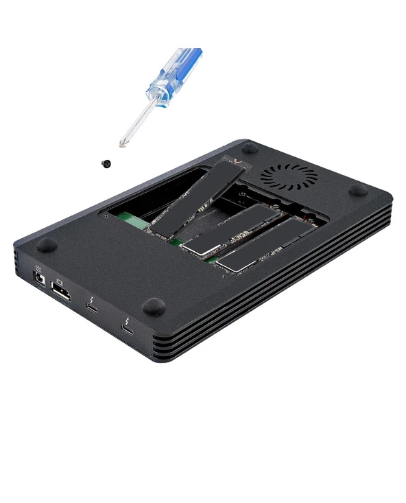 Boîtier 4 lecteurs PCIe M.2 | Thunderbolt™ 3 | Bloc d’alimentation EPS 72W et câble Thunderbolt 3 de 70 cm inclusCe boîtier SSD Thunderbolt™ 3 à 4x M.2 PCIe vous permet de transformer quatre disques durs solides (SSD) M-Key PCI-Express basés sur M.2 NVMe ou AHCI en une solution de stockage externe haute performance.Le boîtier SSD est auto-alimenté par une alimentation EPS de 72W incluse qui alimente le boîtier, les disques connectés et fournit jusqu’à 15W d’alimentation à tout périphérique Thunderbolt 3 en aval. Un câble hôte certifié Thunderbolt 3 de 70 cm est également inclus, pour connecter le boîtier à votre ordinateur.Un stockage M.2 haute performance via Thunderbolt 3 40GbpsLe boîtier est compatible avec les disques SSD 80 mm M.2 à base de PCIe (M-Key) à simple/double face. Créez une solution de stockage externe qui utilise la bande passante haute performance disponible sur votre port Thunderbolt 3, offrant des vitesses de transfert de données combinées pouvant atteindre 40 Gbps pour un maximum de quatre disques. Le boîtier mental ventilé est doté de tampons thermiques et d’un ventilateur de refroidissement pour garantir que vos SSD fonctionnent à des températures optimales.Débit dédié de 8 Gbps pour chaque disque individuelUn seul couloir PCIe de 8 Gbps est dédié à chaque disque connecté. Cela garantit des performances de lecture/écriture constantes sur l’ensemble du boîtier, quelle que soit l’activité de chaque disque. Le boîtier prend également en charge le RAID logiciel avec des systèmes de gestion du stockage tels que Storage Spaces (Microsoft), RAID Assistant (macOS) ou mdraid/mdadm (Linux). La prise en charge du RAID logiciel, associée à des performances de disque exceptionnelles, en fait le boîtier idéal pour les professionnels de la création travaillant avec des fichiers volumineux tels que des graphiques haute résolution, des vidéos et des fichiers de CAO.Certifié ThunderboltCe boîtier est certifié Thunderbolt pour garantir une expérience utilisateur et une compatibilité optimales lorsqu’il est connecté à un périphérique hôte Thunderbolt 3, tel qu’un MacBook Pro 16, 13, Air, Lenovo ThinkPad X1 Carbon / Série T, Dell XPS / Latitude / Precision ou HP EliteBook. Le boîtier de disque externe est également compatible en avant avec les appareils Thunderbolt 4 (aux performances Thunderbolt 3).Ports supplémentaires pour la flexibilité de l’espace de travailLe boîtier dispose d’un port de sortie DisplayPort, vous permettant de connecter un écran DisplayPort à votre ordinateur via le boîtier Thunderbolt 3, avec des résolutions allant jusqu’à 4K/5K 60Hz. Le boîtier dispose également d’un port Thunderbolt 3 en aval pour enchaîner un périphérique TB3 supplémentaire ou connecter un écran compatible TB3 supplémentaire.M2E4BTB3 est couvert par une garantie de 2 ans de StarTech.com, avec un support technique multilingue gratuit à vie basé en Amérique du Nord.[HTMLLINEBREAK][HTMLLINEBREAK]Notes:• Cet appareil n’est pas compatible avec les lecteurs à état solide M.2 basés sur SATA (B-Keyed ou M+B Keyed).• Ce périphérique ne prend pas en charge les périphériques hôtes Thunderbolt 2 ou Thunderbolt 1 utilisant des adaptateurs d’interface.• Ce dispositif ne prend en charge que les SSD M.2 de 80 mm.• Les dispositifs en aval connectés partagent la bande passante avec les SSD connectés et peuvent réduire les performances globales de transfert de données lorsqu’ils sont connectés.• Les ordinateurs Apple Mac équipés de processeurs M1 ne peuvent prendre en charge qu’un seul écran externe connecté via le boîtier SSD. Cependant, les ordinateurs Apple Mac équipés de processeurs Intel ou M1 Max/Pro peuvent prendre en charge deux écrans externes connectés via le boîtier SSD.The StarTech.com Advantage
