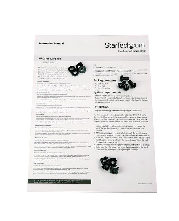 Le modèle CABSHELF1U10 bénéficie de la garantie à vie StarTech.com et de l’assistance technique à vie gratuite.