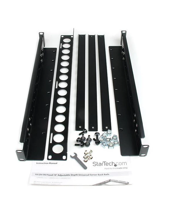Permet de monter des serveurs ou du matériel de réseau de 19 po à tout rack standardCes rails 1U pour rack de serveur vous permettent de monter du matériel non destiné à une installation en rack, comme des racks de serveur pour bureau, du matériel de gestion de réseau ou des commutateurs KVM, sur un rack de serveur de 19 po sans sacrifier 1U d’espace rack comme sur une étagère traditionnelle. Ils constituent également une très bonne solution pour monter du matériel dont les rails sont endommagés ou des équipements OEM supprimés, comme des serveurs Dell™, IBM®, HP® ou Apple dont les rails pour rack ne sont plus disponibles à la vente.Ce produit est conforme aux exigences de l’accord Trade Agreements Act (TAA) du gouvernement fédéral des États-Unis et peut donc être acheté dans le cadre du programme gouvernemental de l’agence GSA.Installez du matériel non destiné à être monté en rack 1UCes rails pour rack vous donnent la possibilité de monter en rack du matériel non montable, en l’enserrant dans un cadre ouvert soutenu par trois solides barres transversales. Ainsi, vous pouvez installer ce type de matériel en montant les rails sur votre rack de serveur, avant de placer l’équipement voulu dans le support en-dessous. Pour le matériel présentant déjà des trous de montage, les rails présentent également de multiples schémas de montage pour une bonne fixation et davantage de sécurité.Supports de montage universels s’adaptant à presque tous les racks de serveur de 19 poConformes à la norme EIA-310 concernant le matériel de montage en rack de 19 po, ces rails de montage sont universellement compatibles avec les racks de serveur de 19 po. De plus, leur profondeur est ajustable pour s’adapter à diverses tailles et configurations de racks. Enfin, ils comportent un panneau arrière de gestion de câbles qui est amovible, pour encore plus d’adaptabilité.Durabilité maximalePour assurer la sécurité de votre matériel, ces rails de montage sont en acier laminé à froid. Ainsi, ils peuvent supporter jusqu’à 25 kg.Le modèle UNIRAILS1U bénéficie de la garantie à vie StarTech.com avec assistance technique gratuite.The StarTech.com Advantage