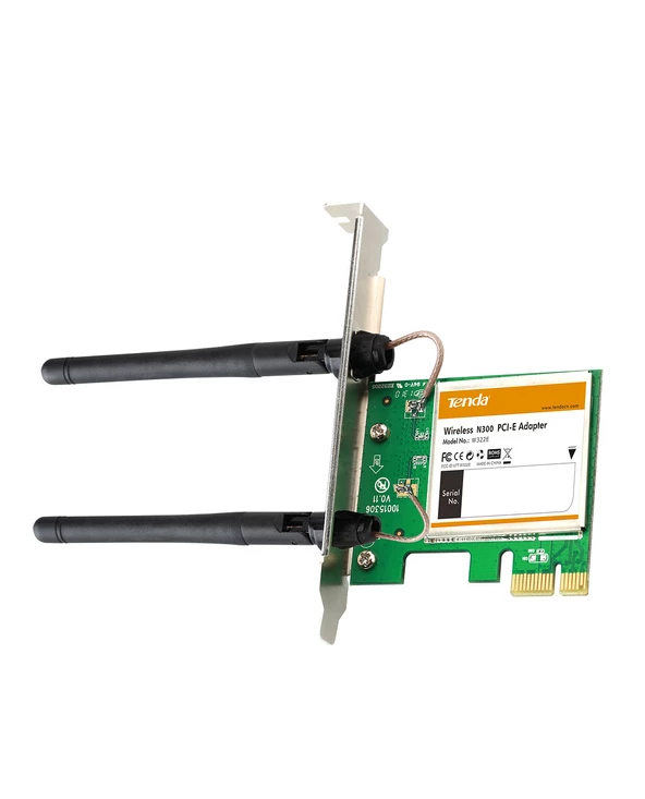 Tenda W322E. Interne. Technologie de connectivité: Avec fil, Interface de l’hôte: PCI Express, Interface: WLAN. Débit de transfert des données maximum: 300 Mbit/s, Norme Wi-Fi: Wi-Fi 4 (802.11n), Bande Wi-Fi: Monobande (2,4 GHz). Couleur du produit: Noir, Vert
