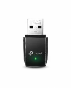 TP-LINK AC1300 Mini Wireless MU-MIMO USB Adapter. Technologie de connectivité: Avec fil, Interface de l’hôte: USB, Interface: WLAN. Débit de transfert des données maximum: 1267 Mbit/s, Norme Wi-Fi: Wi-Fi 5 (802.11ac), Bande Wi-Fi: Bi-bande (2,4 GHz / 5 GHz). Alimenté par port USB. Couleur du produit: Noir