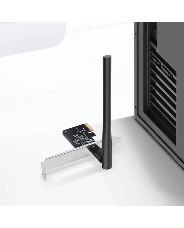 TP-Link Archer T2E. Interne. Technologie de connectivité: Sans fil, Interface de l’hôte: PCI Express, Interface: WLAN. Débit de transfert des données maximum: 433 Mbit/s, Norme Wi-Fi: Wi-Fi 5 (802.11ac), Bande Wi-Fi: Bi-bande (2,4 GHz / 5 GHz). Couleur du produit: Noir, Argent