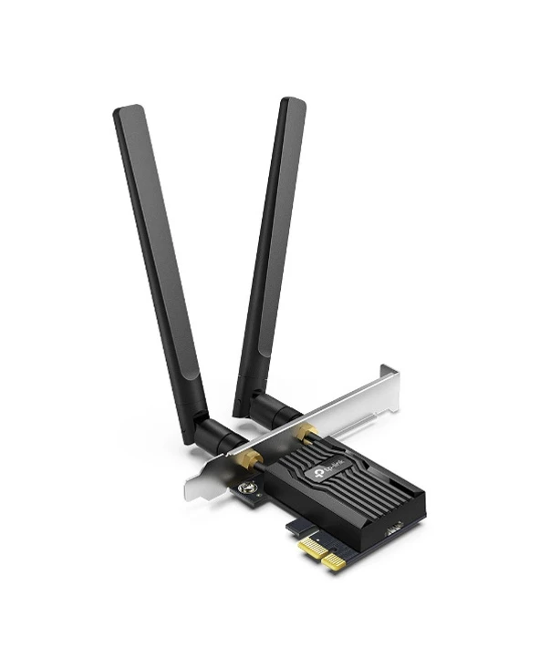 TP-Link ARCHER TX55E. Technologie de connectivité: Sans fil, Interface de l’hôte: PCI Express, Interface: WLAN / Bluetooth. Débit de transfert des données maximum: 2402 Mbit/s, Norme Wi-Fi: Wi-Fi 6 (802.11ax), Bande Wi-Fi: Bi-bande (2,4 GHz / 5 GHz). Couleur du produit: Noir