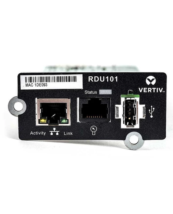 Vertiv IntelliSlot RDU101. Interne. Technologie de connectivité: Avec fil, Interface: Ethernet. Débit de transfert des données maximum: 100 Mbit/s